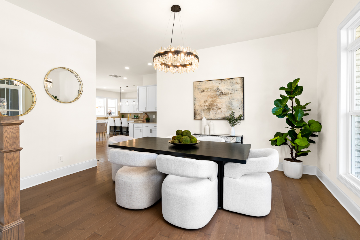 - Dining Area: Dedicated space with geometric gold chandelier — designed for the moments that matter