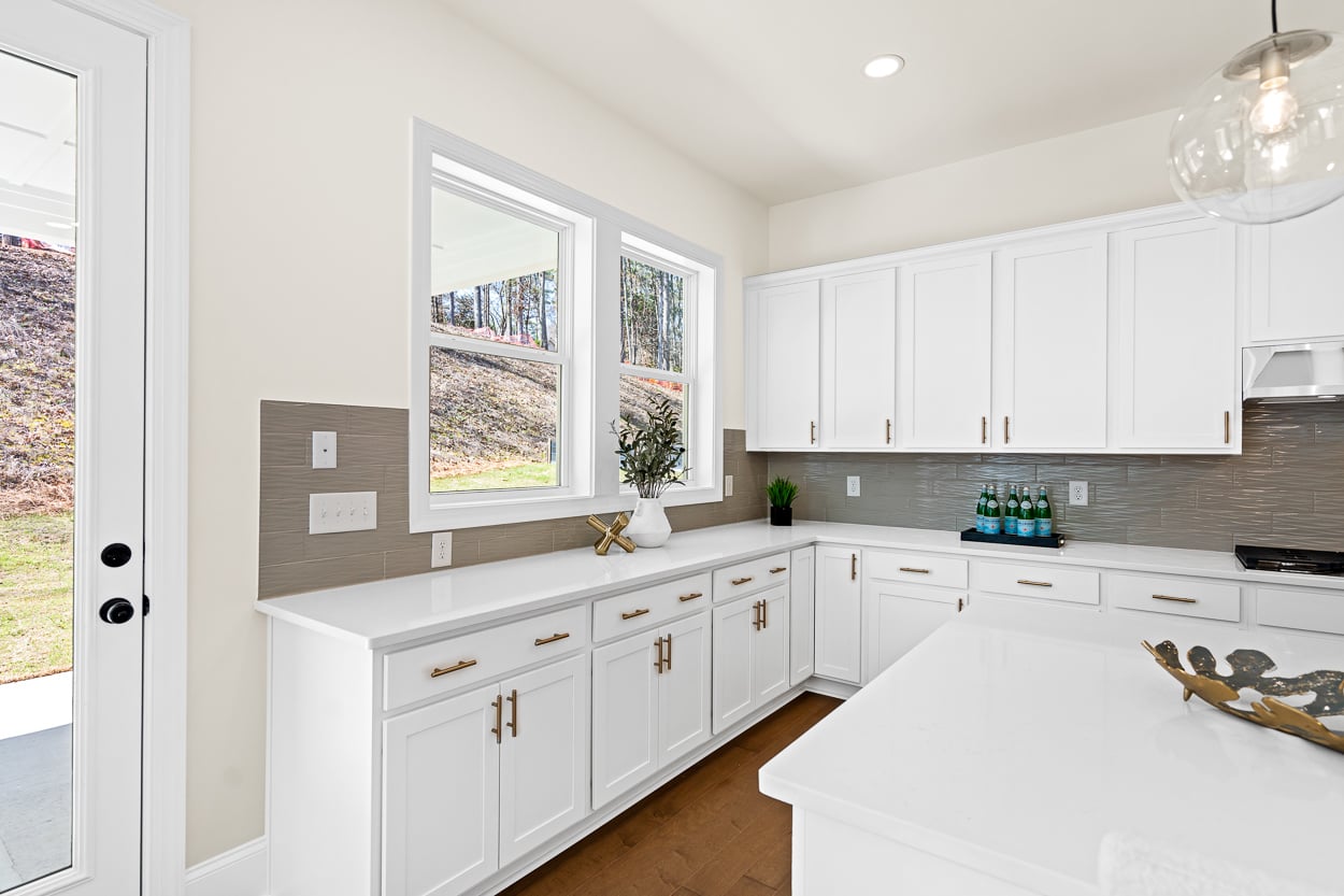 - Quartz Countertops: Warm cream quartz on island and all perimeter surfaces